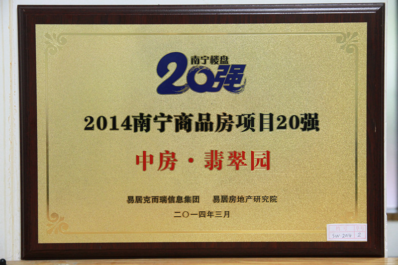 • 翡翠園榮獲2014年南寧商品房項(xiàng)目20強(qiáng)