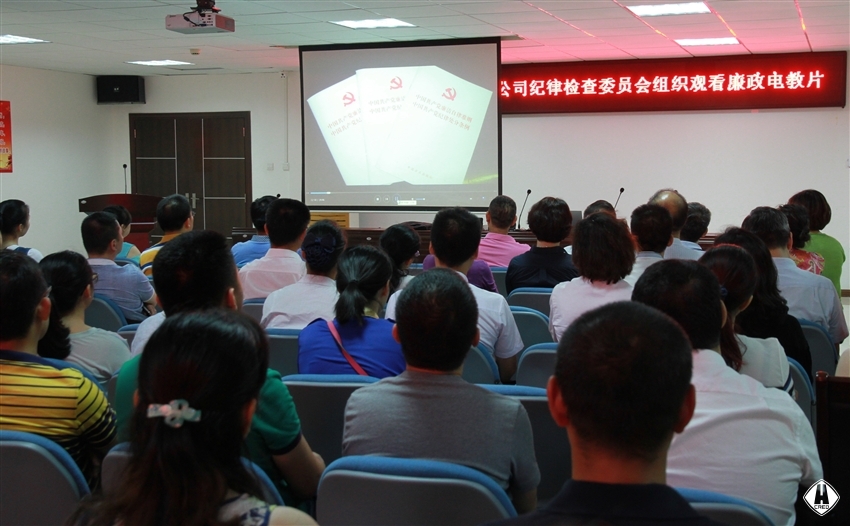 為進一步加強黨員干部的廉政教育,增強黨員的廉潔自律意識,提高拒腐防變能力。5  11日下午,公司紀委在公司二樓會議室組織廣大黨員及非黨中層領導121人觀看廉政警示教育片《敬畏紀律 嚴守底線》和《代價》。