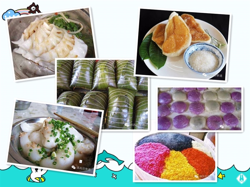 食 作為一名資深的吃貨,不得不說說靖西當?shù)赜忻男〕浴>肝饕耘疵锥雒?,因此許多小吃以糯米為基本原料,經(jīng)過加工,成為人們嘴中贊不絕口的美食。糯軟的米餃、爽滑的卷筒粉、酥脆的番嘰嘟、香甜的糍粑、誘人的大肉粽、軟糯爽口的涼粽、勁道有味的堿水面、特質(zhì)香料的燒烤、香脆可口的酸嘢……都是游客不想錯過的美食。