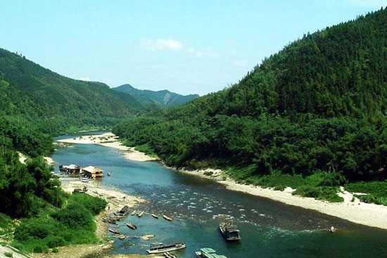 乘著小船游蕩在清澈見底的融江上,兩崖修竹挺立,草兒碧青,令人心醉神迷。到了一片漂亮的蘆葦區(qū),大家歡呼著下了船。愛攝影的尋找最佳角度,喜歡奇石的盡情挑選河石,愛美的朋友則三五成群的相互拍照,留下自己美麗的倩影,我當然也就成了其中一員。