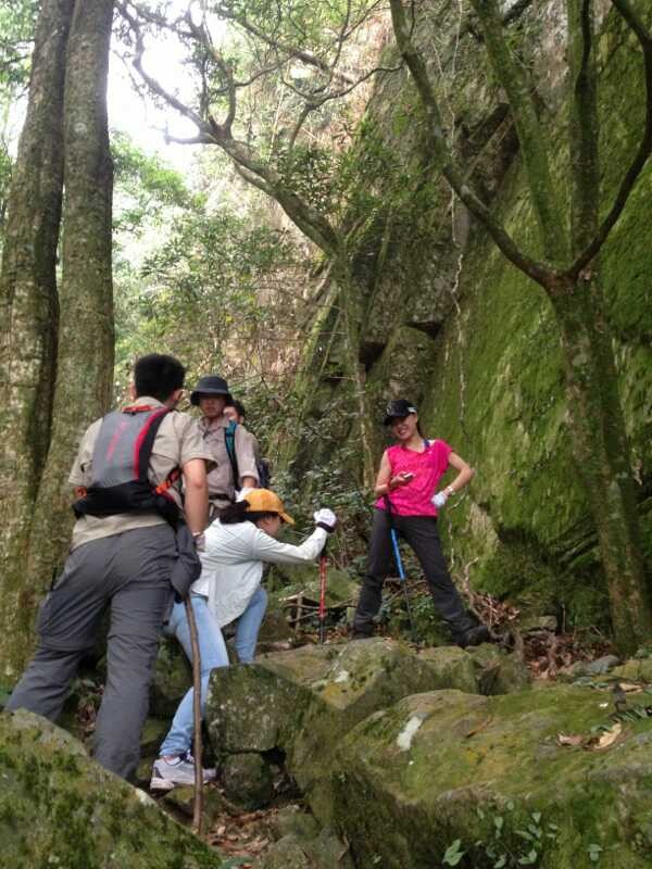 周末,好友相約,登頂大明山早。上十點(diǎn)從南寧出發(fā),經(jīng)過一個(gè)小時(shí)車程到達(dá)大明山腳。當(dāng)我們站在山腳仰望山頂時(shí),心中對挑戰(zhàn)極限充滿了渴望。不管多么遠(yuǎn)、多么高、多么陡、多么險(xiǎn),開始攀登,才發(fā)覺,每前進(jìn)一步,眼前的風(fēng)景決然不同,直有直的筆挺,曲有曲的險(xiǎn)峻,險(xiǎn)有險(xiǎn)的俊秀,高有高的視野!就這樣,我們懷著好奇,帶著已知和未知的肯定與否定,開始一路攀爬。上山的路愈發(fā)陡峭、危險(xiǎn),漸漸地,大伙的體力開始不支,大腿灌了鉛似的變得越來越沉。同行的小伙伴感嘆這是登山還是攀巖,大家手腳并用,每前進(jìn)一步,都感覺無比艱辛。其中一個(gè)小伙伴開始動(dòng)搖,想放棄,但是團(tuán)隊(duì)登頂?shù)男拍?,讓我們不允許放棄,大家相互鼓勵(lì),相互攙扶,堅(jiān)持登頂。
