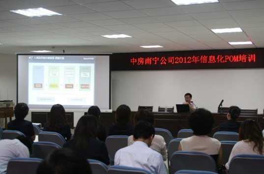 公司于2012年7月12日下午開展了“信息化POM培訓”,開發(fā)部、第一項目部、第二項目部、投資審計部、房產公司、眾標公司相關管理人員以及信息化小組成員、標準化建設工作小組成員共72人參加了此次培訓。培訓主講由南寧市明源軟件科技有限公司蒙老師主講,主要講解了三方面的內容:明源成本、計劃、采招管理業(yè)務模型概述;標桿企業(yè)成本、計劃、采招管理信息化建設的成功案例分享;中房南寧公司成本、計劃、采招管理項目的組織及實施思路。此次培訓強化了公司員工對信息化POM的認識,有利于公司下一步的信息化工作的順利推進。